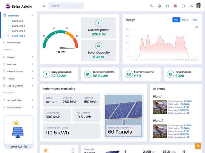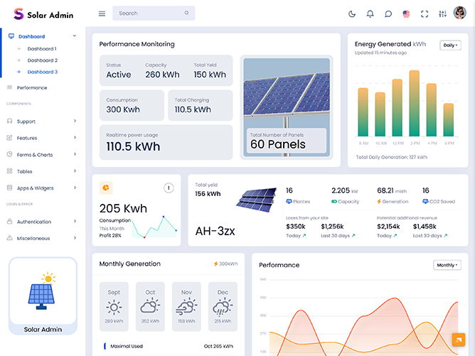 Solar Admin Admin is flexible and fully customizable. Ready to use on your code, you can easily customize the source files.
